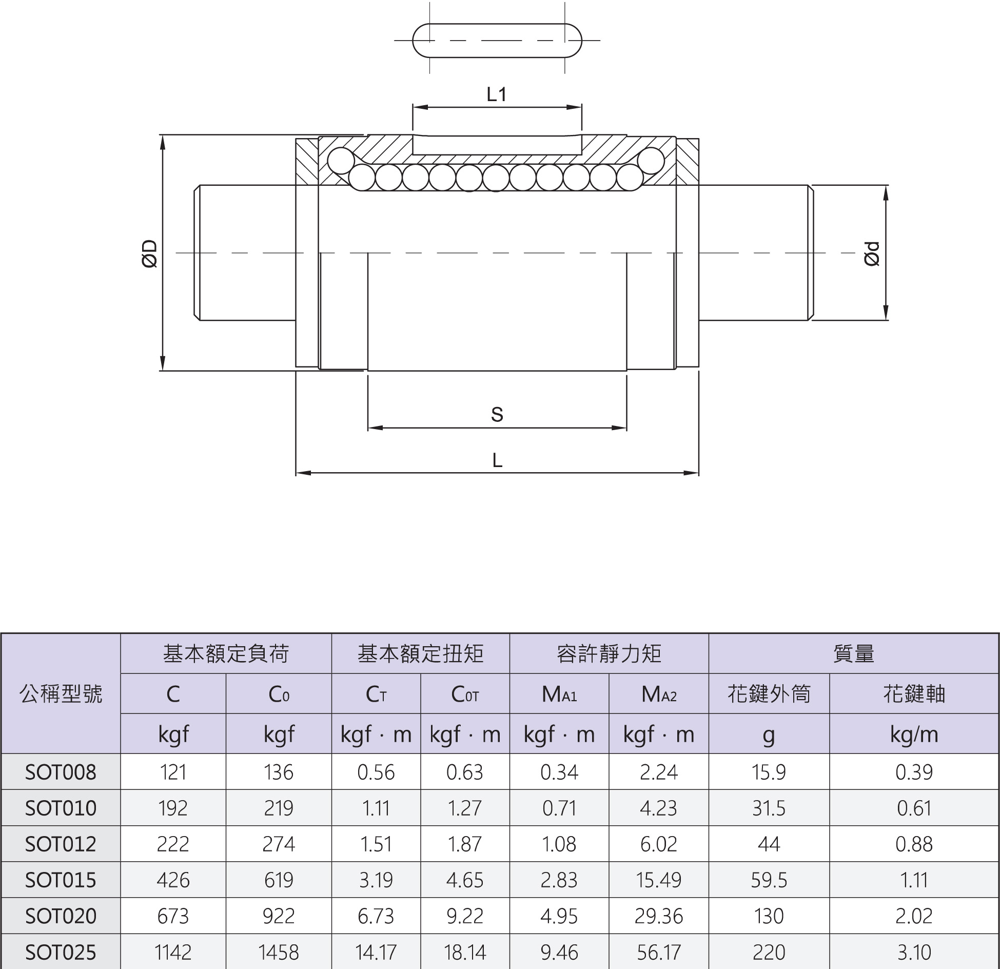 花鍵軸、花鍵外筒則可單獨出貨,使用上較為便利,但組合精度無法達(dá)到超高精度,而